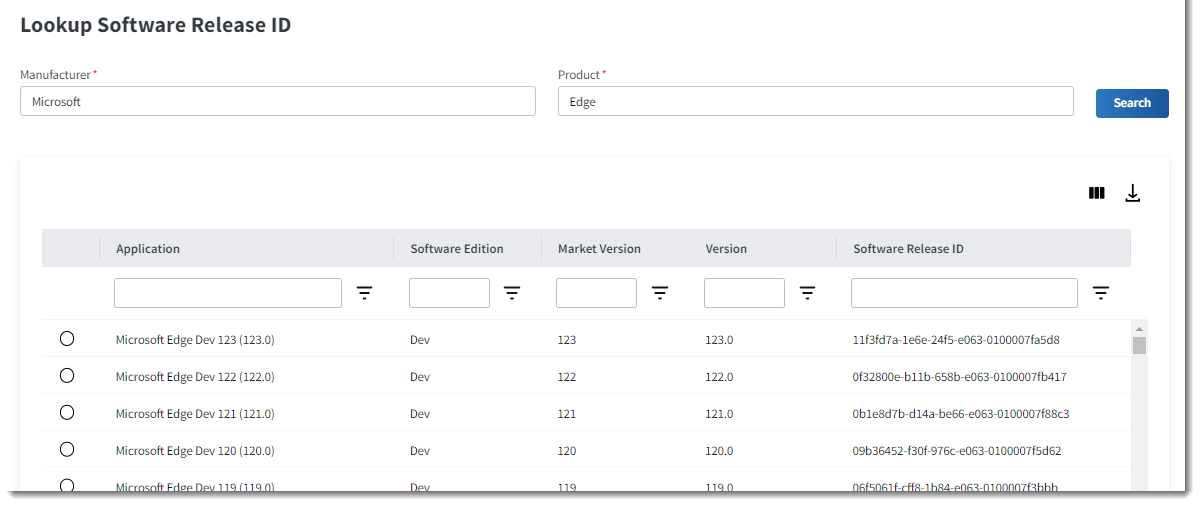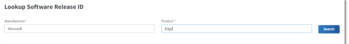 - The Lookup Software Release ID slideout is opened. (If a software release ID is currently assigned to the bucket, this ID is displayed at the top of the slideout.)